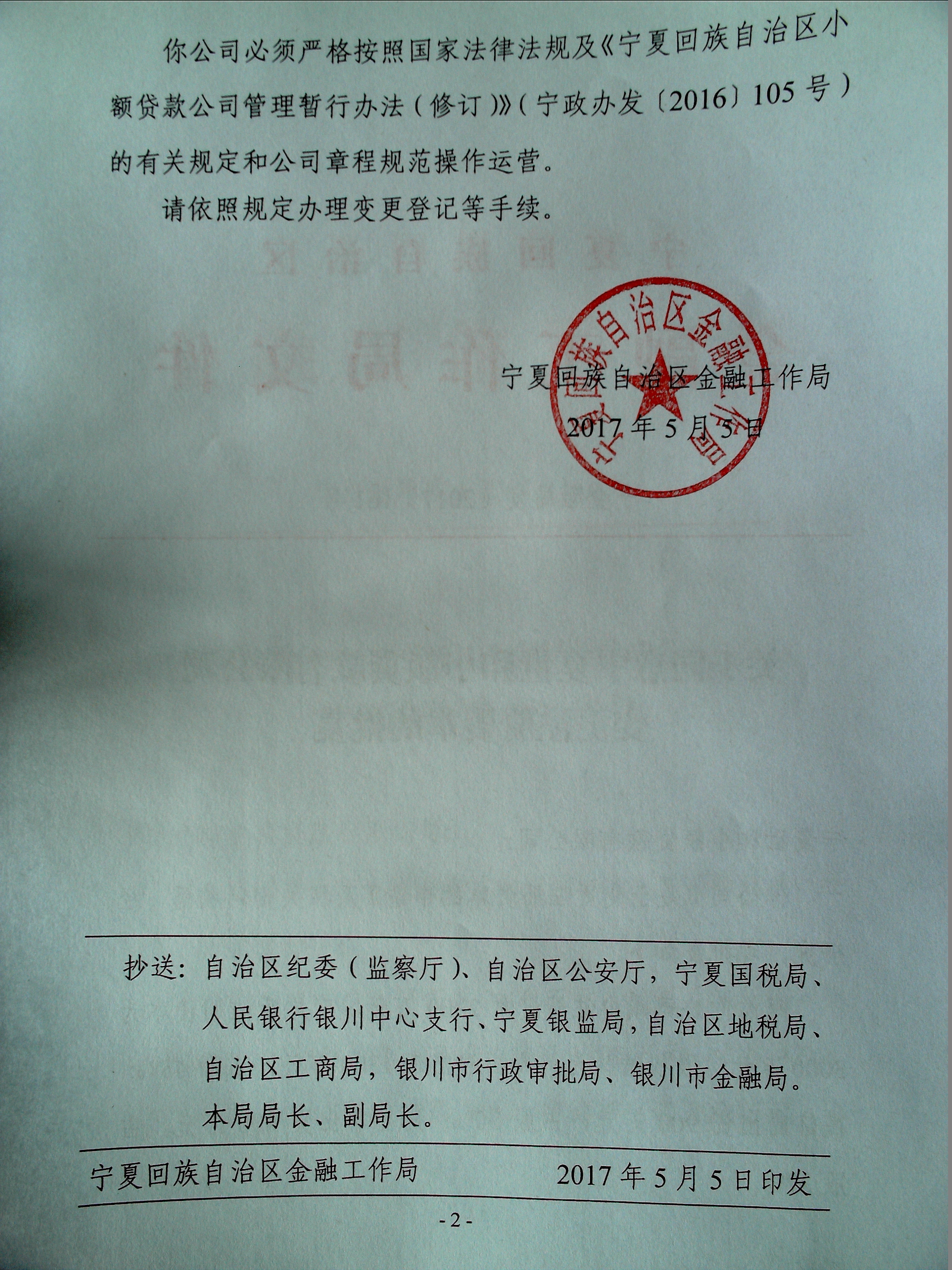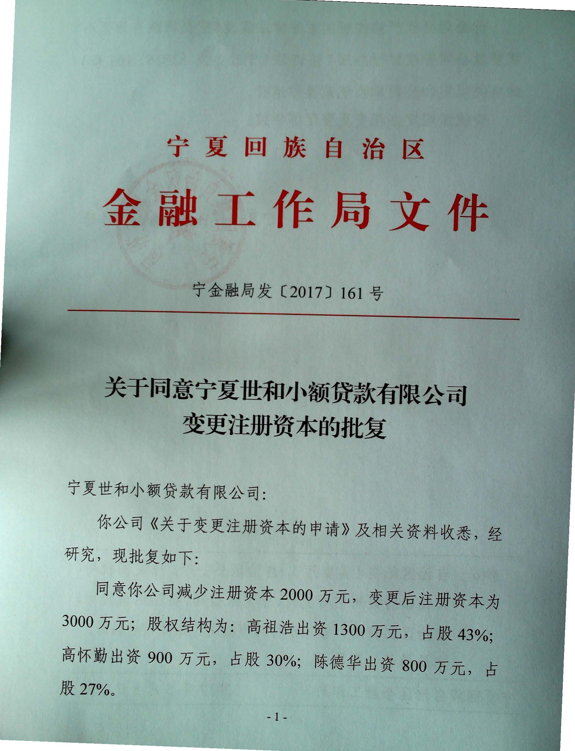 关于同意宁夏世和小额贷款有限公司变更注册资本的批复